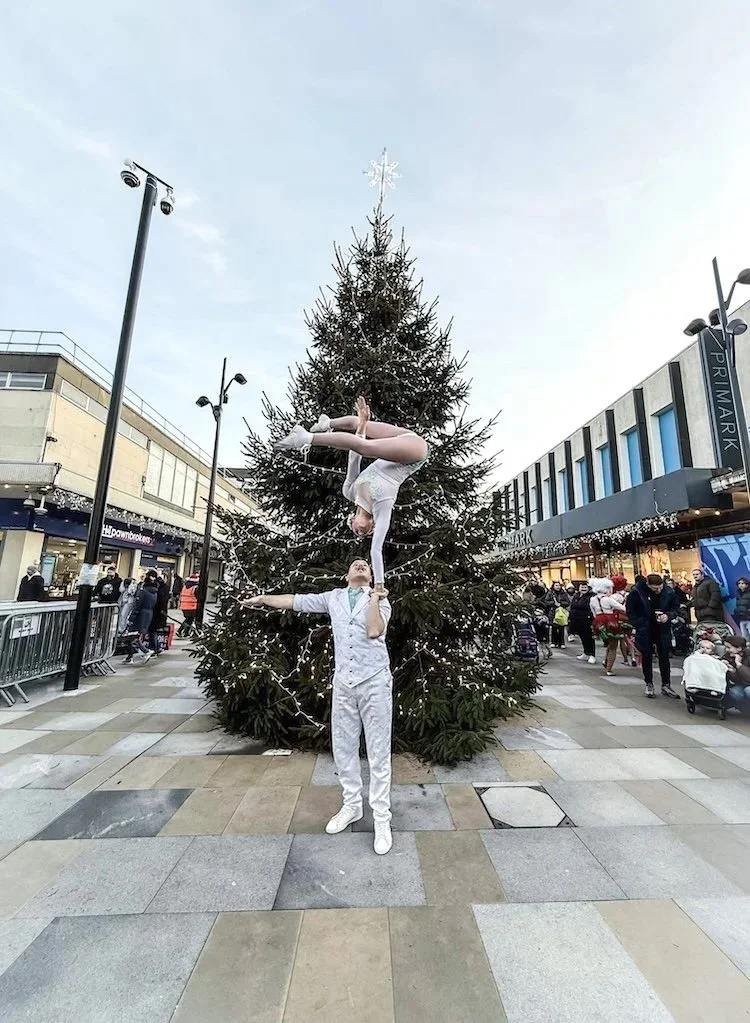 One of our favourite frost laced circus style walkabout act or acrobatic stage show acts is our Frosted Acrobats! This stunning duo perform high level hand to hand acrobatics as well as other circus skills. This act is especially suitable for public Christmas events, corporate Christmas event entertainment and more.