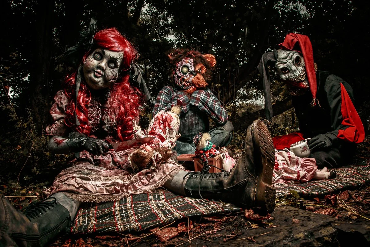 What’s the scariest of all Halloween creatures.. That’s right, dolls themed entertainment! Welcome to Delilah’s Dollhouse. Delilah has had enough of being played with and it’s her turn. She’s woken up all her little toy friends and they’re ready to wreak havoc on the neighbourhood. Out from the dollhouse they have broken and they’ve made their way out of the house via the garage. They are locked and loaded and ready to play. Will you be unlucky enough to meet them this Halloween season? Meet Chuckles the Ventrilloguist Doll, Tod the Teddy, Bonanzo the Jester and Rosie and Posie the Ragdolls. This is one of our top horror themed scare toy acts. Terrifying Halloween entertainment at it’s finest. Book scary toy performers for your event to make it really one to remember.